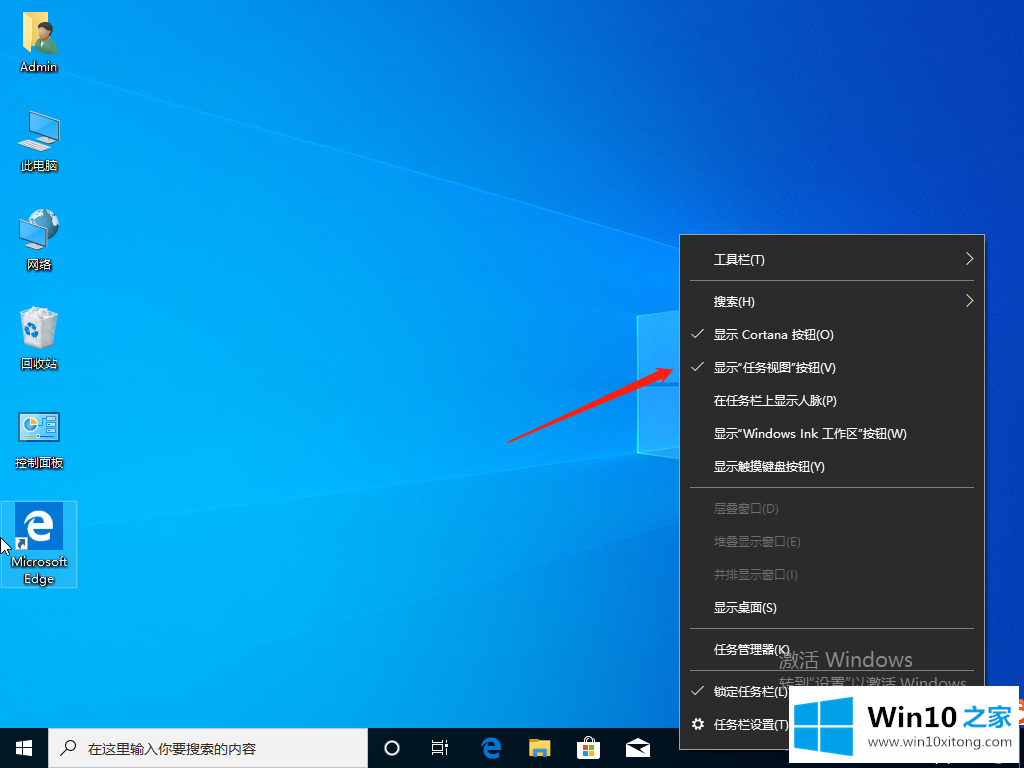 2、此时我们右击任务栏空白处,点击:显示"任务视图"按钮。