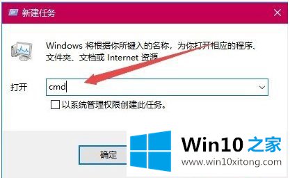 3、这时会打开新建任务窗口,在窗口中输入命令cmd;