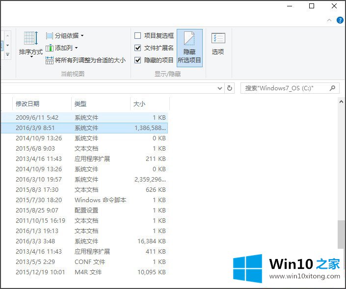 3、这样就能看到C盘的hiberfil.sys文件,这个文件是用来电脑休眠时保存内存中的重要内容的,无法直接删除;