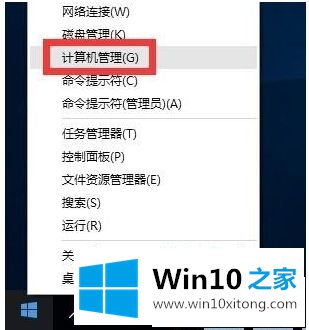 1.右击桌面左下角的“Windows”按钮,从其扩展菜单中点击“计算机管理”项进入;