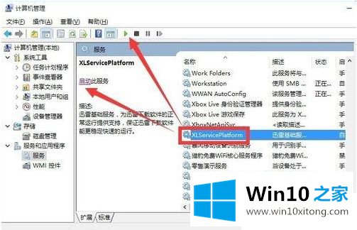 6.同时,为了防止重启电脑后再次出现“风暴视频错误40601”的问题,需要将其服务设置为从系统启动。双击“XLServicePlatform”服务,从打开的“XLServicePlatform属性”窗口将“启动类型”设置为“自动”,点击“确定”完成设置;