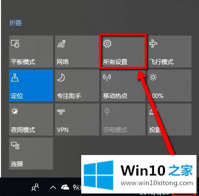 1.点击右下角通知栏,选择“全部设置”;