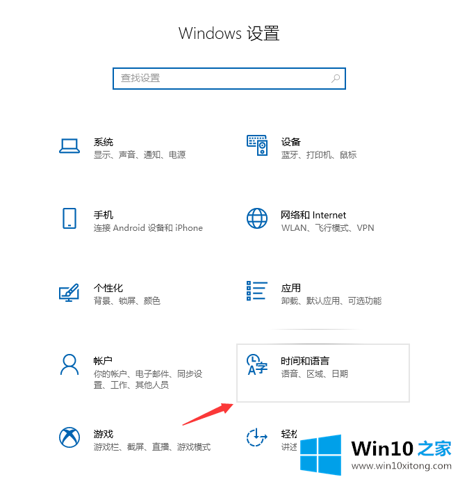 3.点击时间和语言进入,如下图所示