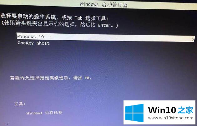 1.此时,原来的Win10系统仍然没有损坏,重启后可以在启动项中选择Windows10。
