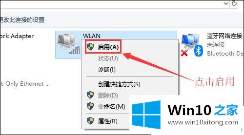 步骤5:现在我们右键单击该无线网络连接,并选择[启用]再次获取新地址。检查网络连接是否正常,黄色感叹号是否消失。