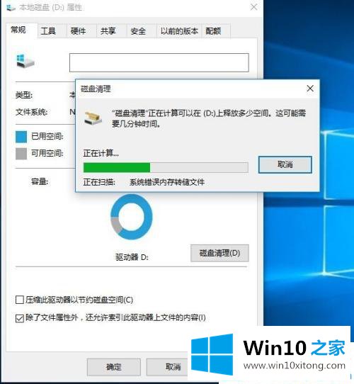 第三步:打开win1064的系统盘属性界面,切换到常规项,点击下面的【[磁盘清理】。