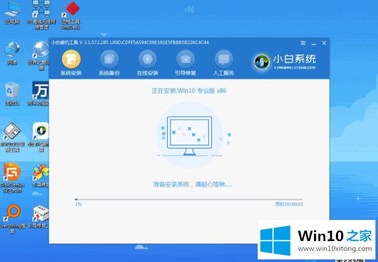 4.进入PE系统软件后,小白会帮大家自动重装,重装后立即重启电脑。