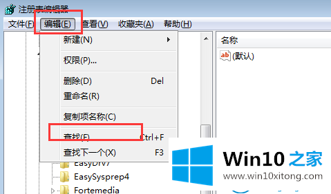 2.在打开的注册表编辑器界面中,单击顶部的“编辑”-“查找”。