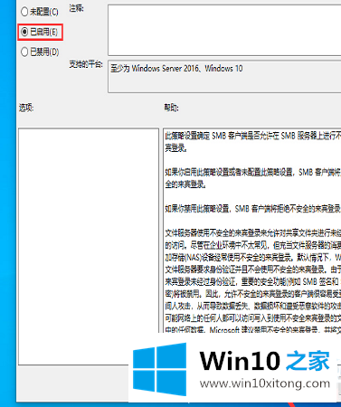 3.然后在右窗口栏中找到选项[启用不安全的来宾登录]。