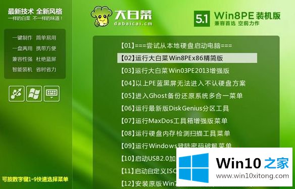 3.由于生产方式不同,有些uefi pe启动盘会直接进入pe系统,有些会先显示这个主界面,选择[02] Enter运行Win 8 PEX 64;