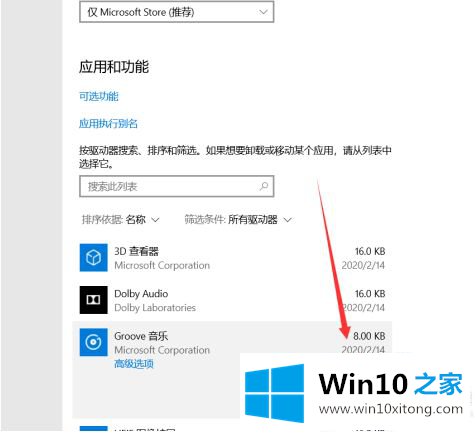 2.单击“应用”选项。在右栏,可以看到系统安装了哪些软件,卸载不需要的软件。