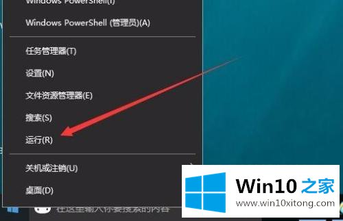 1.在Windows10桌面上,右键单击开始菜单按钮,然后在弹出菜单中选择“运行”菜单项;