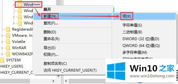 2、在注册表编辑器操作器中,我们依次点击定位至“HKEY_LOCAL_MACHINE\SOFTWARE\Policies\Microsoft\Windows”,鼠标右边的键单击“Windows”,点击“新建”-“DWORD(32位)值” ,参考下面的图片所示。
