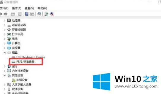 2.单击“键盘”选项,右键单击“PS/2标准键盘”,然后单击卸载。