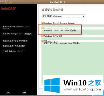 4、完成了软件内部设置后,关闭CAD,进行下一项设置。找到CAD源文件安装包,双击安装。点“安装工具和实用程序”--只勾选第二项“Autodesk CAD Manager Tools”进行安装。这里因为我已经安装了,所以是灰色的