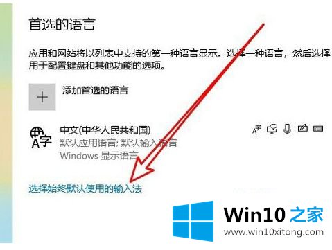 4.在右边的窗口中找到“选择默认使用的输入法”链接。
