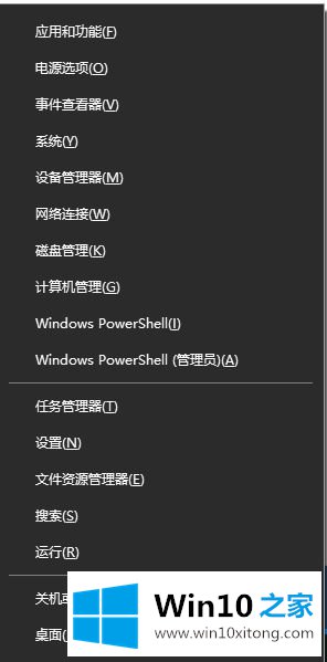 1、右键win10开始菜单图标或按组合键win+x,点击Windows PowerShell(管理员)或命令提示符(管理员)版本较低的win10为这个;