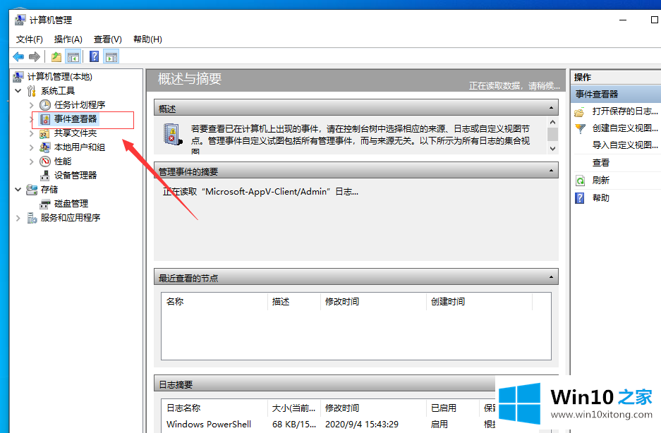 2.进入页面后,选择左侧菜单栏中的“事件查看器”。