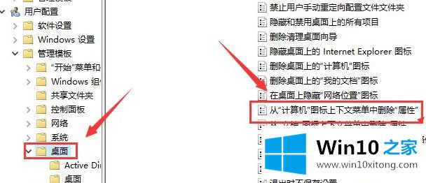 3.双击桌面,如下图所示,在该窗口中找到“从计算机图标上下文菜单中删除属性”。