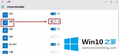 5.找到此时打开的窗口中的音量,然后打开右边的开关。