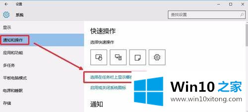 7.我们只需要在通知和操作中选择任务栏上显示哪些图标。