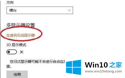 7.在显示器的多显示器设置下,单击连接到无线显示器。