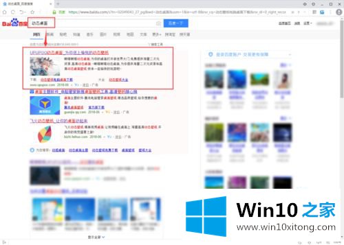 1.打开浏览器,打开百度首页,搜索【动态桌面】,选择第一个,点击回车。