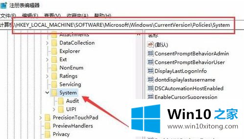 3、这时会打开Windows10的系统的本地组策略编辑器窗口,在窗口中定位到HKEY_LOCAL_MACHINE\SOFTWARE\Microsoft\Windows\CurruntVersion\Policies\System注册表项。