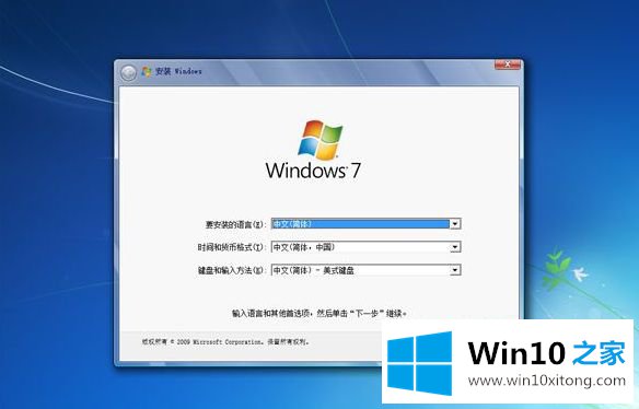 12、通过命令打开win7安装程序,选择安装语言输入法,下一步;