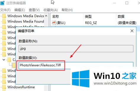 7、双击“。jpg”,输入“PhotoViewer.FileAssoc.Tiff”不包括引号;