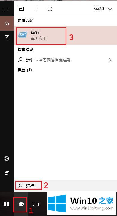 1、点击任务栏上的搜索按钮,输入“运行”,接着打开“运行”程序;