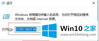 4、打开了运行窗口之后,我们在打开栏中输入,刚刚复制的IP地址,需要注意的是我们在IP地址前面要加2个下划线,输入完成后点击窗口的确定按钮;